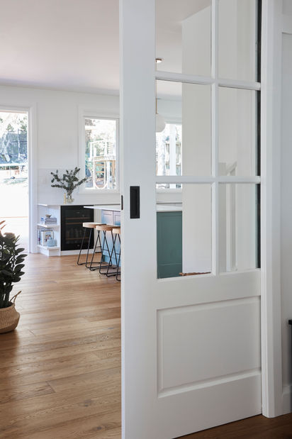The dream kitchen was built ticking all of the boxes with a classic design, a splash of colour, multi-use appliances and ample storage. This led out onto a beautiful new timber deck overlooking their generous backyard. A perfect home for enjoying family time and entertaining.